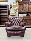 Вишукане крісло Честерфілд у розкішному бордовому кольорі є втіленням класичної елегантності. Завдяки своїй натуральній шкіряній оббивці та легендарному дизайну, воно ідеально підійде для кабінету керівника, бібліотеки або класичної вітальні.