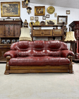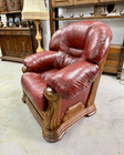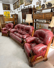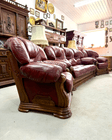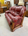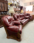 Розкішний комплект м’яких меблів складається з просторого тримісного дивана та двох комфортних крісел. Гарнітур виготовлений на міцному каркасі з масиву натурального дуба який забезпечує надійність та довговічність конструкції. Натуральна шкіра насиченого бордового відтінку виглядає дуже шляхетно та додає інтер'єру особливого шарму. ⠀⠀ ⠀Окремої уваги заслуговує задня частина виробів яка оздоблена дерев’яними панелями з різьбленням та вставками в тон основної оббивки. Це дозволяє ставити меблі навіть посеред кімнати адже вони виглядають естетично з усіх боків. Комплект дуже м’який та зручний що гарантує вам ідеальний відпочинок. ⠀⠀Характеристики:
