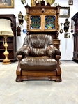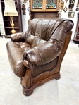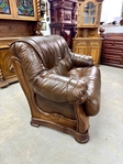 Каркас виготовлений із натурального дуба, міцного та довговічного матеріалу, оздобленого різьбленими декоративними елементами. Натуральна шкіряна оббивка приємна на дотик і зберігає свій розкішний вигляд протягом багатьох років.