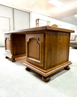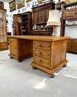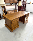 Двотумбовий письмовий стіл виготовлений у Нідерландах із масиву дуба, що гарантує його міцність та стійкість на довгі роки. Завдяки класичному дизайну та природній текстурі дерева він стане головним елементом вашого робочого простору. Стіл має велику робочу поверхню та продуману систему зберігання: з одного боку розташована містка тумба з дверцятами, а з іншого три висувні шухляди для документів та канцелярії.⠀⠀ ⠀Вигнуті ніжки та різьблені фасади додають моделі особливого вінтажного шарму, який ідеально підходить для кабінету чи домашньої бібліотеки. Натуральне дерево створює приємну атмосферу для роботи, а надійна конструкція дозволяє витримувати значні навантаження. Це якісні європейські меблі, які підкреслюють статус та додають інтер'єру затишку.⠀⠀Характеристики: