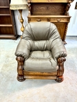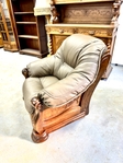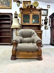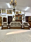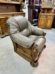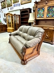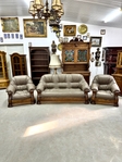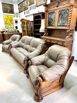 У комплект входить тримісний диван і два зручні крісла. Каркас виготовлений із натурального дуба, прикрашений різьбленими елементами, що підкреслюють класичний стиль меблів. Такий набір чудово підійде для вітальні, кабінету або простору для відпочинку, де важливі якість і естетика.