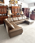 Шкіряний кутовий диван у кольорі капучино