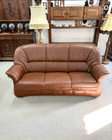 Цей затишний диван у класичному стилі стане центром відпочинку у вашому домі. Модель виконана з якісної натуральної шкіри коричневого кольору. Висока спинка з м’якими горизонтальними секціями забезпечує чудову підтримку спини та неймовірний комфорт.⠀⠀ ⠀Округлі та пухкі підлокітники дуже зручні для тривалого відпочинку, а глибокі сидіння дозволяють комфортно розміститися трьом дорослим людям. Невисокі акуратні ніжки роблять масивну конструкцію візуально легшою. ⠀⠀Характеристики: