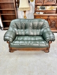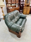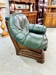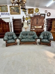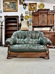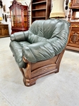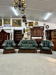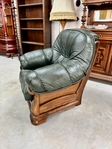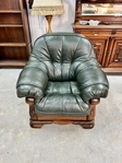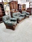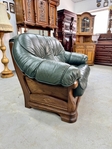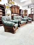 Набір м'яких меблів складається з двомісного дивана та двох крісел, що поєднують в собі розкіш і затишок. Кожен виріб має міцний дубовий каркас, оздоблений елегантним різьбленням. Оббивка з натуральної шкіри насиченого зеленого кольору додає комплекту вишуканості, а також є довговічною та легкою в догляді.