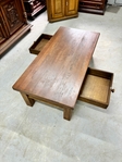 Стіл обладнаний двома наскрізними шухлядами, що забезпечують зручне зберігання журналів, пультів чи інших дрібниць. Це практичний і стильний елемент меблів для тих, хто цінує природну красу та порядок.